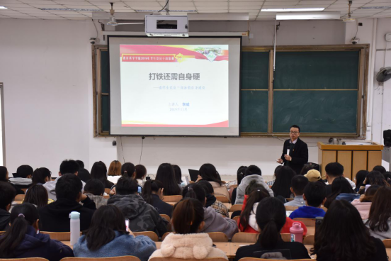 11月22日,正科级辅导员李威于零号楼合一教室作“打铁还需自身硬”专题讲座。围绕“打铁还需自身硬”强调学生党员干部加强自身建设的重要性。他提到,身为学生党员干部,要加强自我修养,提高综合素质,发挥引领带头作用,并从立德行、讲奉献、正风气、讲情怀四个方面对学生干部提出三点要求:一是要提高综合素质,树立榜样;二是要热情服务同学,奉献爱心;三是要忠诚热爱集体,实现价值。