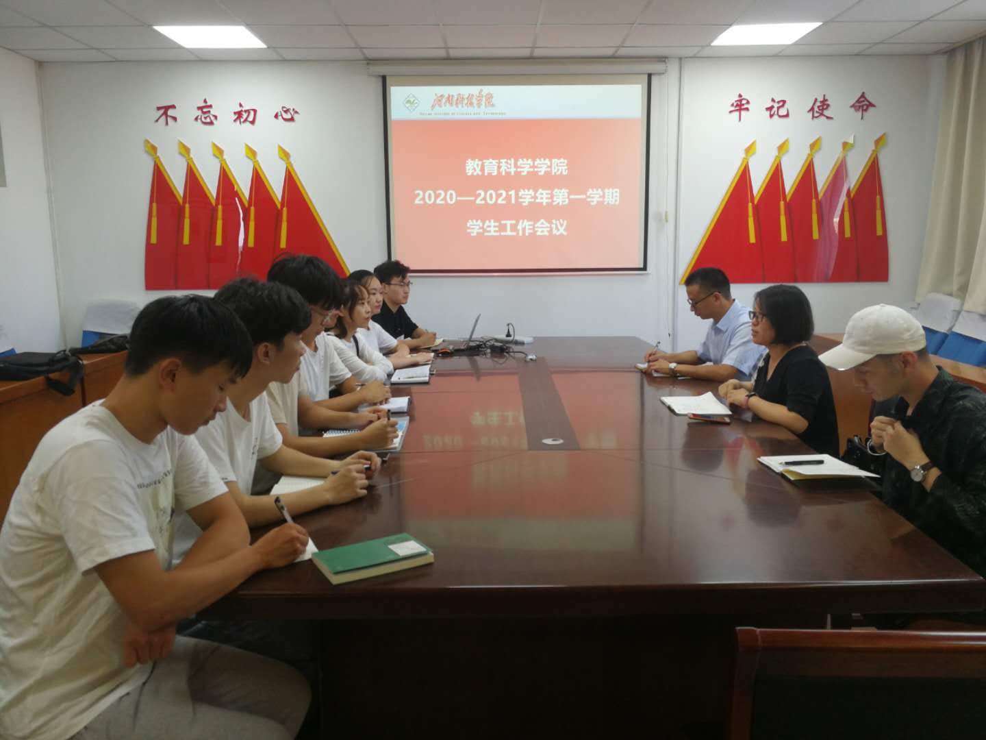 在零号楼十楼会议室召开2020-2021学年第一学期学生工作会议。院团委书记熊慧娟、正科级辅导员李威、辅导员张钊铭及团委学生会主席团参加了此次会议。