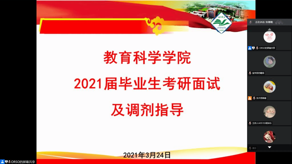 举行2021届毕业生考研复试及调剂指导线上会议。 2021届毕业班辅导员卢璐洁及2021届考研学生参加会议。