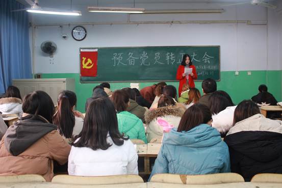 学生第二党支部预备党员转正大会在2号楼209教室举行。支部全体党员出席本次大会。会议由支部书记卢璐洁主持,主要讨论预备党员毕新燕、周梦婷、张磊磊等12名同志的转正问题。