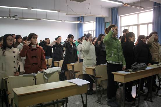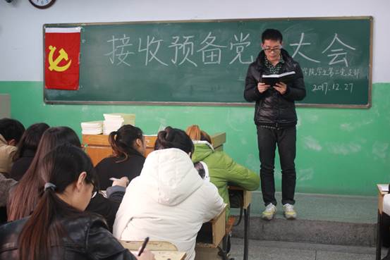 在2号楼209教室召开学生第二党支部预备党员接收大会。支部的正式党员、预备党员和部分入党积极分子参与会议。