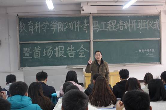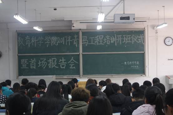 于11月21日13:00在九合一教室举办2017年“青马工程”开班仪式暨首场报告会。院党委副书记朱宏、团委书记熊慧娟、团委副书记李威、辅导员卢璐洁及15、16、17级学生干部参加此次大会。