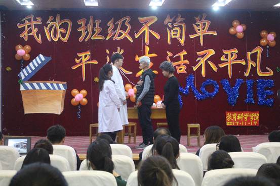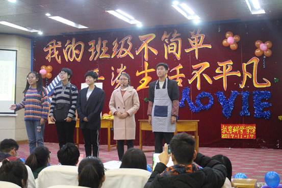 于11月17日晚在图教201举办了以“我的班级不简单,平淡生活不平凡”为主题的班委短剧比赛。院党委书记孟景舟、团委书记熊慧娟、辅导员卢璐洁、17级全体学生参加本次比赛。