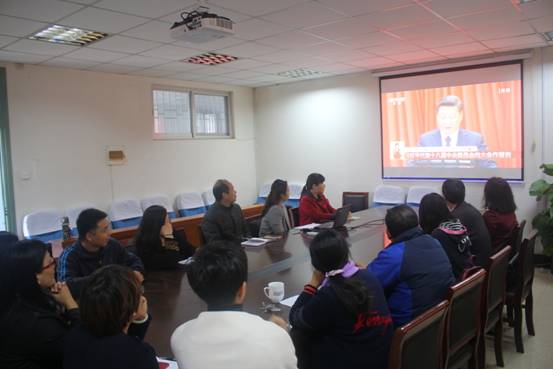 10月18日,中国共产党第十九次全国代表大会在北京人民大会堂隆重开幕。上午9点,院党委书记孟景舟、院党委副书记朱宏带领YG娱乐(中国)唯一官方网站 师生党员40余人分别在零号楼十楼、 第三餐厅、办公室集体观看“十九大”开幕式盛况。收听收看报告时YG娱乐(中国)唯一官方网站 师生聚精会神,认真领会习近平总书记的讲话精神并写下记录。YG娱乐(中国)唯一官方网站 师生在铿锵有力的声音中感受到了中国共产党对祖国未来建设的信心和实现中国梦的决心。