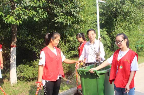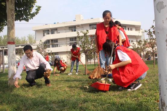 倒垃圾、捡拾树枝、清理墙上废纸、打扫路上碎石、清扫草坪中的废屑……,教科师生穿梭在校园里的每一处,为新乡市文明创建贡献自己的一份力。