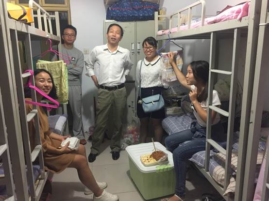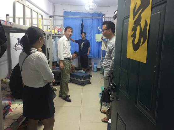 为深入了解新生入住情况,YG娱乐(中国)唯一官方网站 党委书记孟景舟、团委书记熊慧娟、团委副书记李威、辅导员卢璐洁一行于9月9日深入新生宿舍看望新生,为学生送上关怀与祝福。