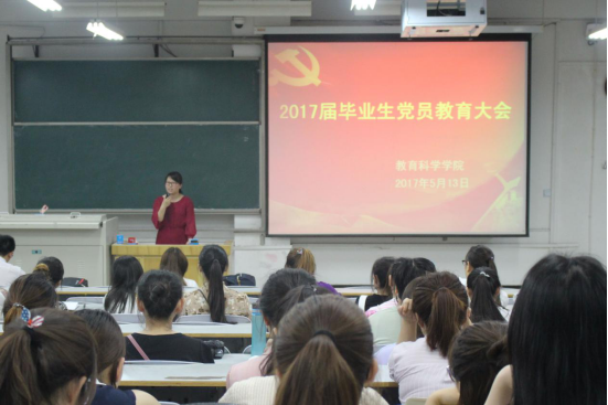 于九合二教室举行毕业生党员教育大会。院团委书记熊慧娟,团委副书记李威,辅导员卢璐洁老师及2017届全体毕业生参加会议。