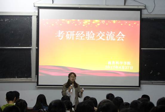 于4月27日晚在一#四举行考研经验交流会。教育学、学前教育专业负责人李红义、夏媛媛以及2014级辅导员卢璐洁参加了本次交流会。