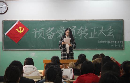 学生第二党支部在2204教室召开了预备党员转正大会,支部书记卢璐洁出席会议。会议由支部组织委员左青同志主持,主要讨论预备党员张赛、马颖颖、乔云等6位同志转正问题。