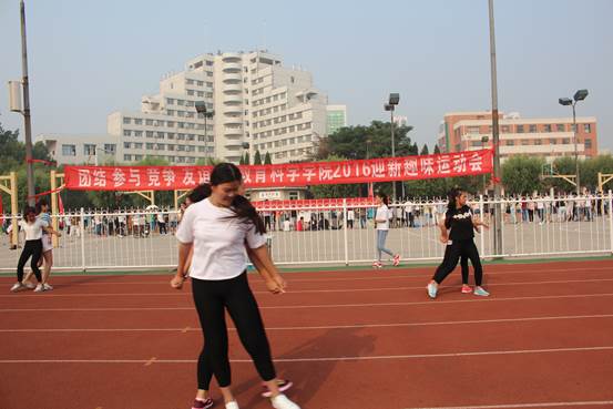 于9月17日在西操场举行了新生趣味运动会,党委书记孟景舟、党委副书记朱宏、团委书记熊慧娟、团委副书记李威以及辅导员卢璐洁亲临现场指导。