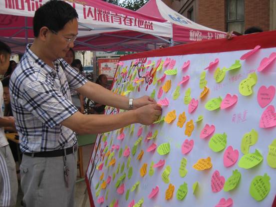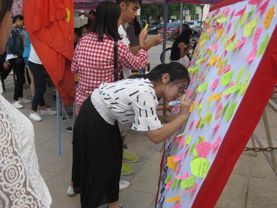 (新生揭下便利贴并留下自己对未来大学的美好期望)