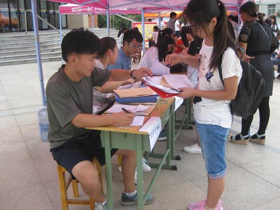迎新工作的顺利进行离不开志愿者们无微不至的服务。迎新的前一天,志愿者们就开始了搭帐篷、搬桌椅等准备工作。