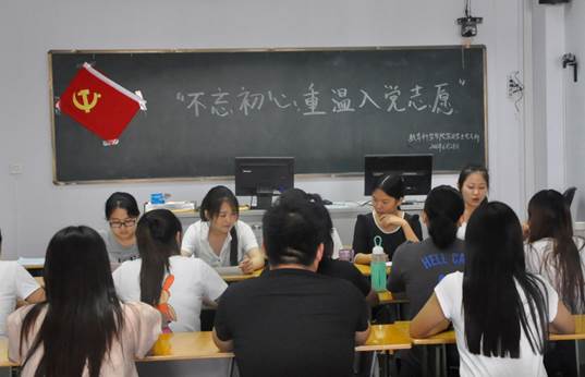 党委《关于在“两学一做”学习教育中以“不忘初心,重温入党志愿”为主题开展支部活动》的文件精神。随后,部分党员同志上台朗读入党志愿书,联系个人的成长经历,讲述自己的入党历程。其中,李梦梦同志说:“重温入党志愿就是要让大家不忘初心,在日常学生、生活中都要对照检查自己的一言一行,始终保持共产党员的纯洁性和先进性。”活动最后,全体人员在支部组织委员左青的领誓下,庄严的举起右手重温入党誓词。