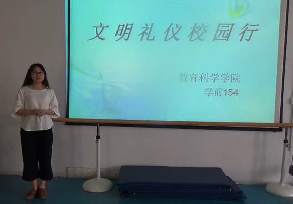 学前154班在系办舞蹈房开展了以“文明礼仪校园行”为主题的班会。此次班会由辅导员卢璐洁主持。