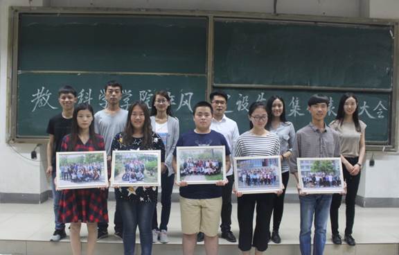 会议伊始,团委书记熊慧娟宣读了《关于对学前151班等五个班风建设先进集体进行表彰的决定》,教育学141班、学前教育142班、教育学151班、学前教育151班、中外152班荣获“2015-2016学年第一学期先进班集体”称号。伴随着欢快的乐曲,代理班主任上台为获奖先进班集体颁发奖品,勉励他们继续努力,争取更大进步。随后,受表彰代理班主任代表随军威和受表彰班级代表李雅林、徐圆发言,他们对YG娱乐