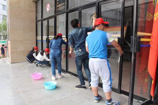 四周草坪地、道路以及大楼玻璃进行大扫除。整个活动进行了两个小时,全体成员充分发扬 “不怕苦,不怕累,不怕脏”的“三不怕”精神,圆满完成任务。