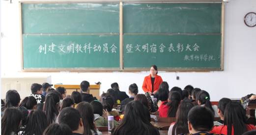 在一号楼合一教室召开了“创建文明教科动员会暨文明宿舍表彰大会”。院辅导员、学生会干部及各宿舍代表参加了本次大会。