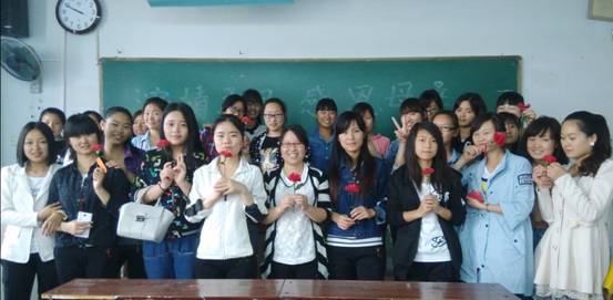 首先集体观看一段关于母亲的唯美沙画视频,通过沙画展示出母爱的伟大,母爱的无私,母爱的真诚,歌颂世界因为有了母爱我们世界才变得更加的丰富多彩。观看后,同学们自由上台发表自己观看后的感想。其次学生代表讲述关于自己和母亲的一些事,通过讲述母亲对我们爱的点滴,让我们深刻体会到她们不经意间的一举一动和所说的每一句话,都是伟大而无私的爱。接着是“千里送祝福”环节,现场每位同学给自己的母亲编辑一条短信送上自己的一份爱以及在便利贴上写下自己想要对母亲说的话。最后由学生代表教大家做手工花——康乃馨,集体表达对母亲的那份最最温馨的祝福。同学们心中充盈着的对母亲满满的爱,在这一刻得到了尽情的表达。