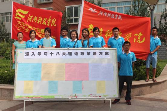理论政策宣讲服务团队相继在河南省新乡市五普社区和部分乡村地区,开展主题为 “深入学习十八大,理论政策进万家” “三下乡”社会实践活动。活动前,团队负责人积极联系社区(乡村)居委会,活动时,我们与社区居民面对面交流,通过发放宣传页传达活动主题与政策点;通过宣传板报展示政策内容;通过现场问题交流、解疑等形式,开展理论宣讲工作;用通俗易懂的语言,恰当贴切的事例,热情向市民宣讲十八大和十八届三中全会精神及系列政策内容,动员广大人民群众积极热情参与到“四大河南”建设工作中去。