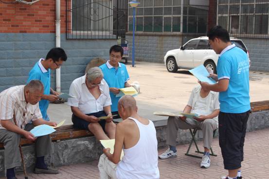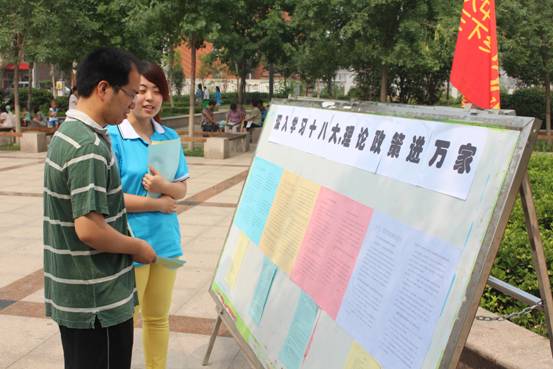 宣讲队员们顶着烈日,走进居民集聚点,面对面与居民交流,手牵手同居民学习,认真聆听广大居民的心声,了解他们对国家政治的认识及国家政策与居民生活的密切相关点,通过实地调研,走访群众,心连心共同进步。