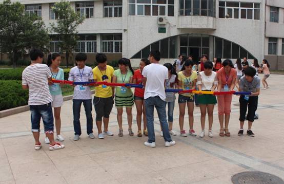 活动中,学生们随机分成了三个队,每组选出一名队长,队长代领大家商定一个队名和一句口号。接下来,三队成员开始了激烈紧张的团体活动,团队训练项目有“齐心协力”,“十万火急乒乓球”,“夹气球”,“你是我的眼”等。在此次活动中,通过团队建设和其他各项活动,使队员们在认识自我、超越自我、团队意识、思维方式、信心毅力等多个方面都得到了锻炼与培养,是一次充满欢乐又意义重大的活动。