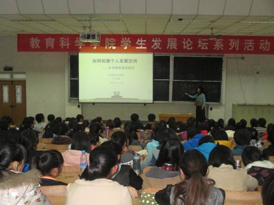 首期“学生发展论坛”在电教综合楼合三教室举行。院长宋飞琼博士为310余名学生作学生发展辅导报告。报告会由院团委书记熊慧娟主持。