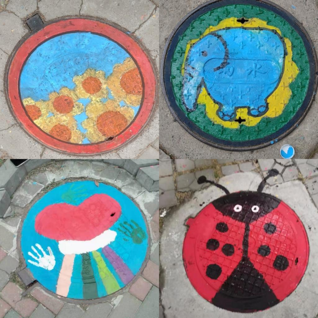 活动前期,各班同学积极参与,发挥自己的想象力和创造力,围绕智慧、和谐、传递正能量等积极向上的主题设计井盖创意涂鸦画。在绘画过程中,尽管天气炎热,但没有影响同学们创作的热情,他们不畏炎热,用手中的笔和颜料绘出了极具特色、主题鲜明的井盖图样。涂鸦的井盖不仅成为校园里一道靓丽的风景,而且传递着由色彩所描绘出的正能量,表现了同学们对学校的深深热爱。