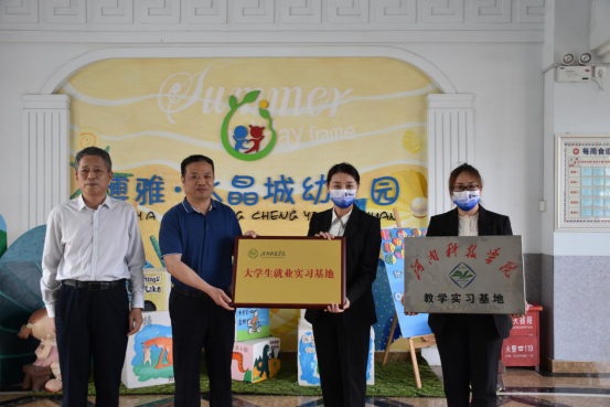 大学生就业实习基地”授予博雅交通幼儿园和水晶城幼儿园负责人。