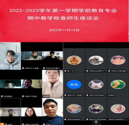 学前教育专业于11月10日13时,以线上会议(腾讯会议)的形式召开了2022-2023学年第一学期期中教学检查工作师生座谈会。座谈会由专业负责人高佳主持,YG娱乐(中国)唯一官方网站
