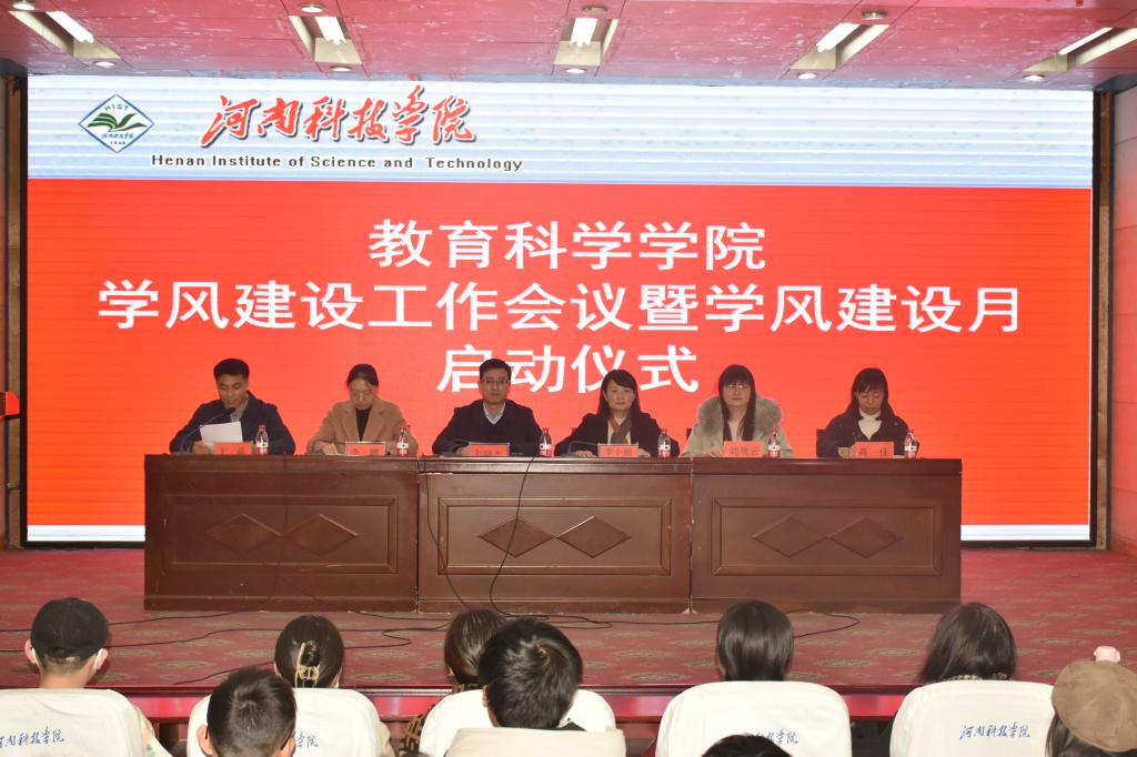 关于开展大学生学风建设月活动的通知》,围绕抓专业自信促学风、抓班级管理促学风、抓课堂教学促学风、抓考试纪律促学风、抓学生党建促学风等5个方面进行安排部署。辅导员代表王毓影宣读大学生学风建设倡议书,教师代表段玉凤、学生代表王小松分别发言。