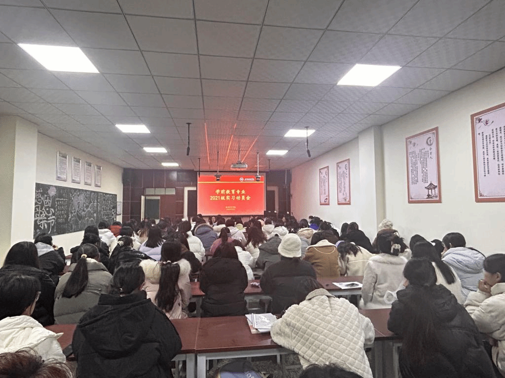 在图书馆4楼技能室召开2021级学前教育专业实习动员会,学前教育专业负责人助理夏媛媛、实习负责人段玉凤、李正淼及校内实习指导教师参加了本次会议,会议由段玉凤主持。