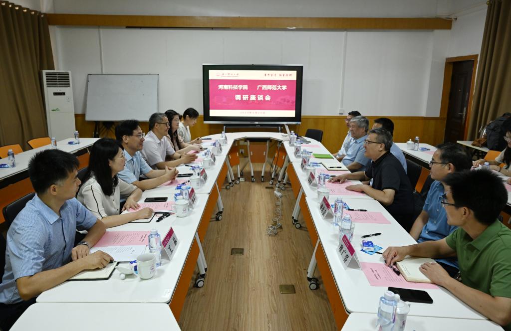 会上,广西师大师范大学副校长宋树祥对冯启高一行表示欢迎,介绍了学校的历史沿革、办学特色、发展规划等基本情况。随后,冯启高对广西师范大学的热情接待表示感谢并介绍了河南科技YG娱乐