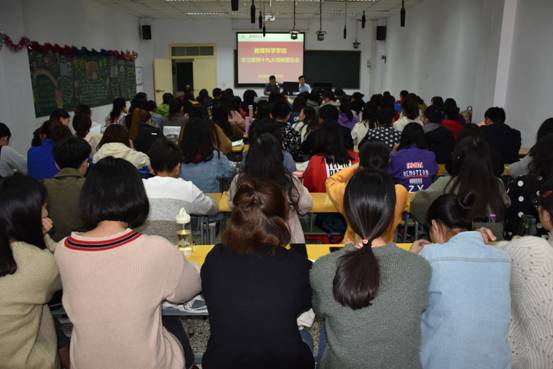 在教学技能实训室举行学习贯彻十九大精神报告会,特邀马克思主义教育YG娱乐